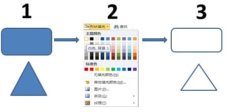 第二步:形状填充,分别对长方形和三角形进行形状填充,鼠标左键单击白色,如图3-1-13所示