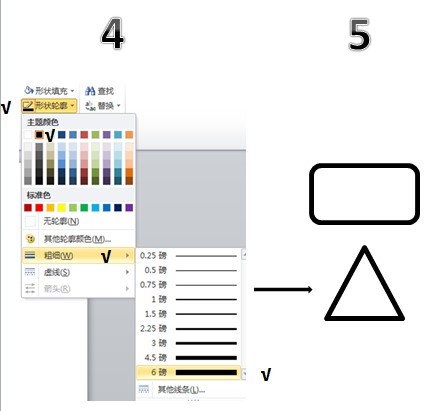 第三步:形状轮廓设置,分别对长方形和三角形进行形状轮廓设置,如图3-1-14所示。