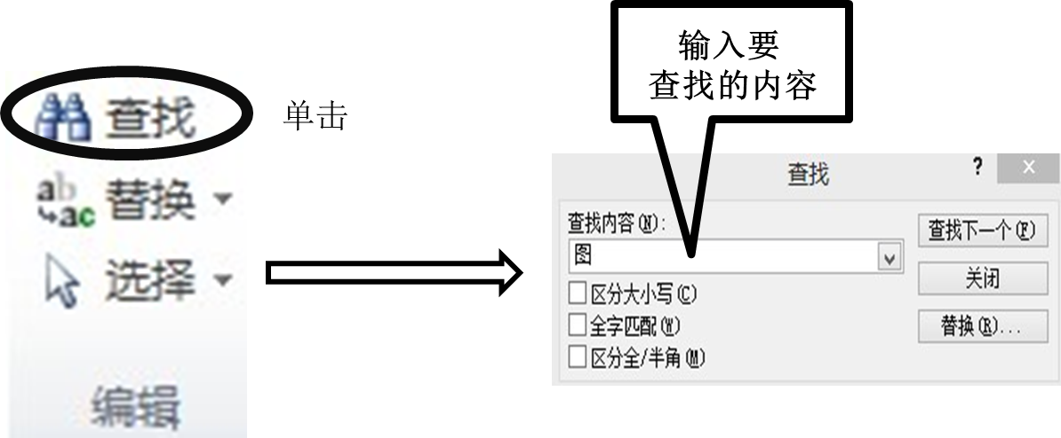 ①“查找”的作用是帮助读者快速在大篇段落中准确快速的查找到所需内容,具体操作如图3-1-19所示。