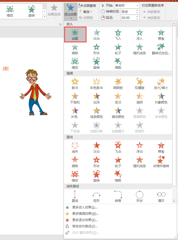 进入动画可以实现一个或多个对象从无到有、逐渐显现的动画效果。