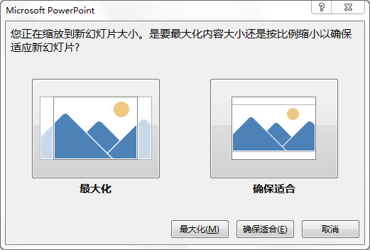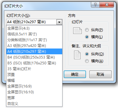 点击【设计】→【幻灯片大小】→【自定义幻灯片大小】,会弹出如图6-59所示的对话框,从中选择合适的纸张大小,设置幻灯片方向并点击【确定】,此时会弹出如图6-60所示的对话框,选择【确保合适】即可。
